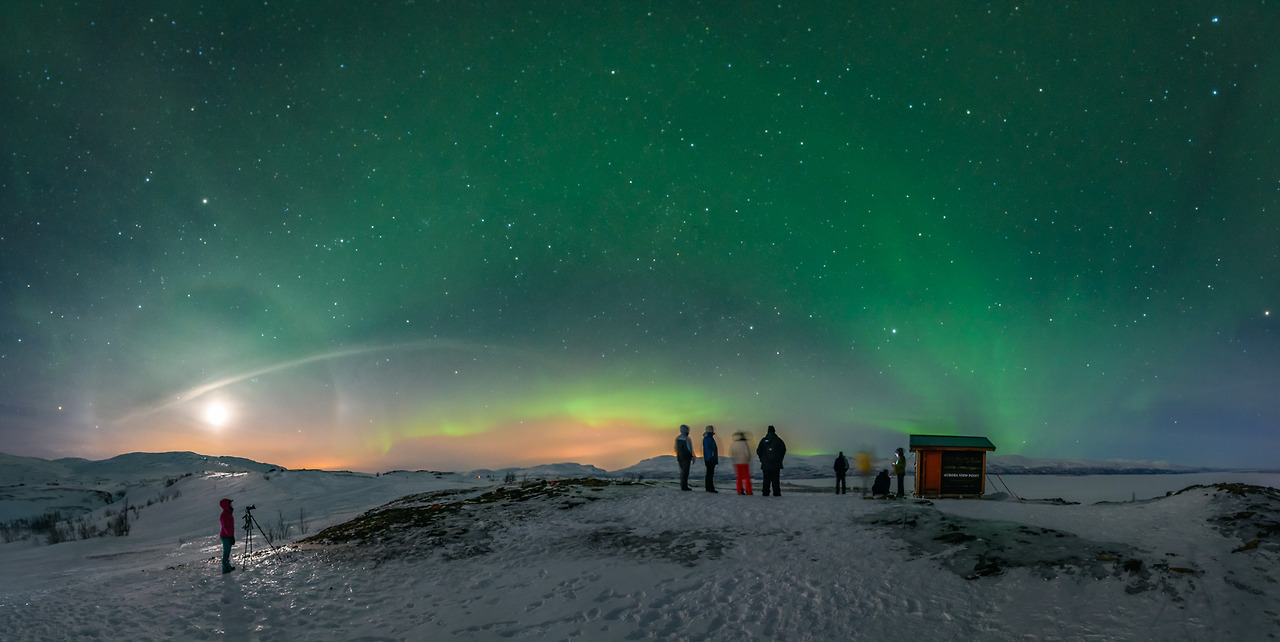 아름다운 아비스코달렌 계곡을 둘러싸고 있습니다. 여름에는 낮과 밤의 빛을 경험하고 백야를 볼 수 있습니다.