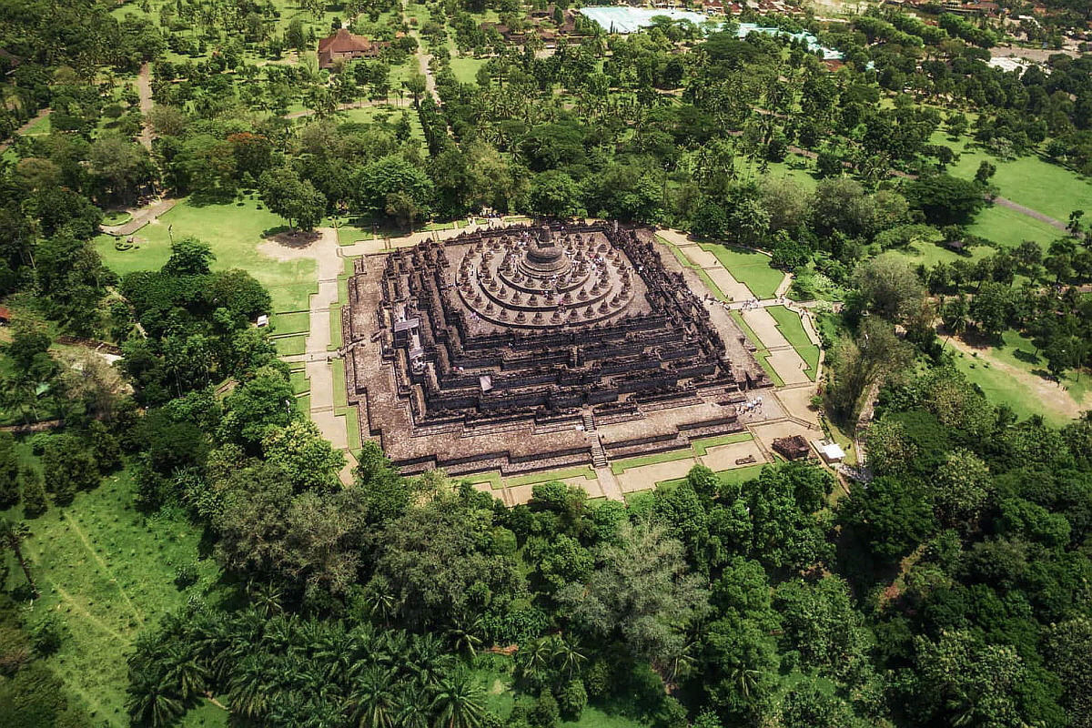 인도네시아 중부 자바에 위치한 보로부두르 사원은 세계에서 가장 큰 불교 사원이다.