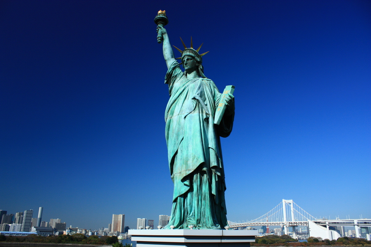 미국 뉴욕 항의 리버티 섬에 1884년 세워진 거대한 여신상.