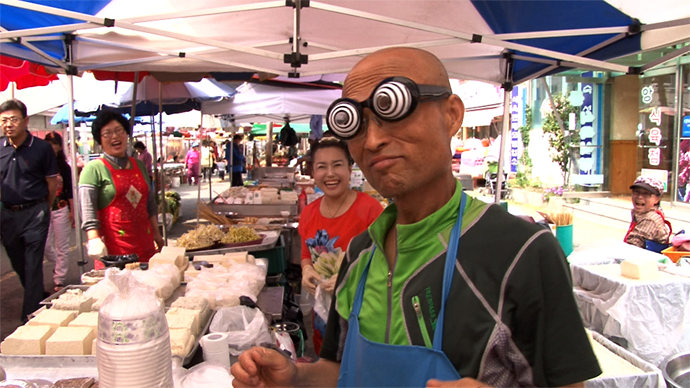 “행복하세요.”사람들로 북적이는 장터에서 ‘행복’을 외치는 한 남자!
