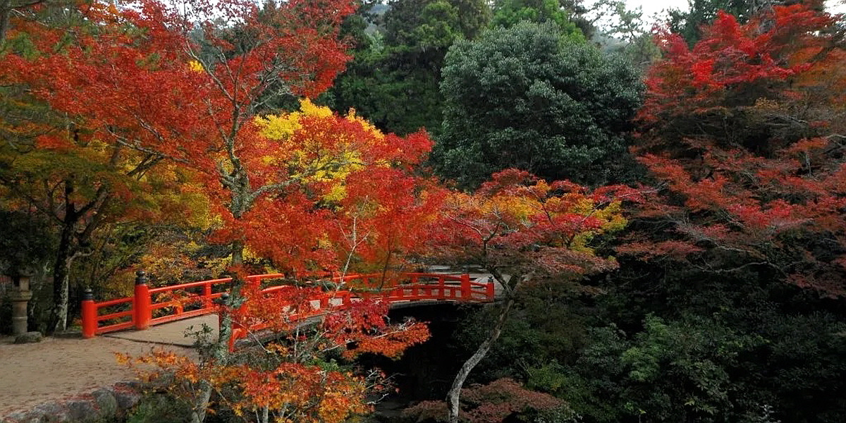 모미지다니 공원은 이와쿠니시에 있는 아름다운 가을단풍으로 유명한 곳이다.