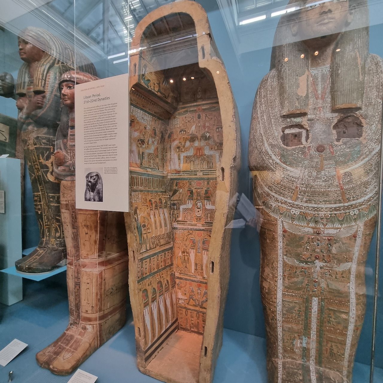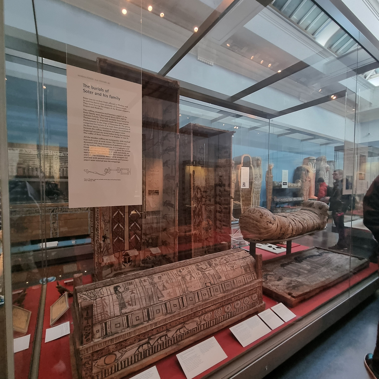 전시실에서는 관, 미라, 장례 가면, 초상화는 물론 죽은 사람과 함께 수장했던 다양한 부장품들을 감상할 수 있다.