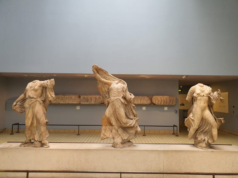 신전의 아름다운 장식 조각을 전시실 벽면에 복원하여 배치하였는데