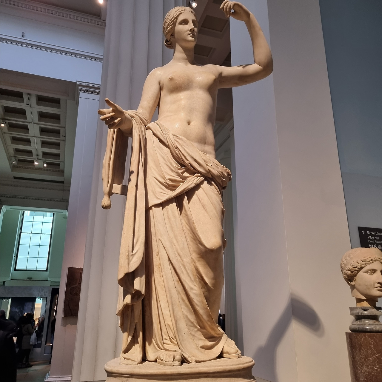 이 신상은 로마의 복사판으로만 남아 있으며, 벌거벗은 몸을 감싸는 여신의 모습을 표현했다.