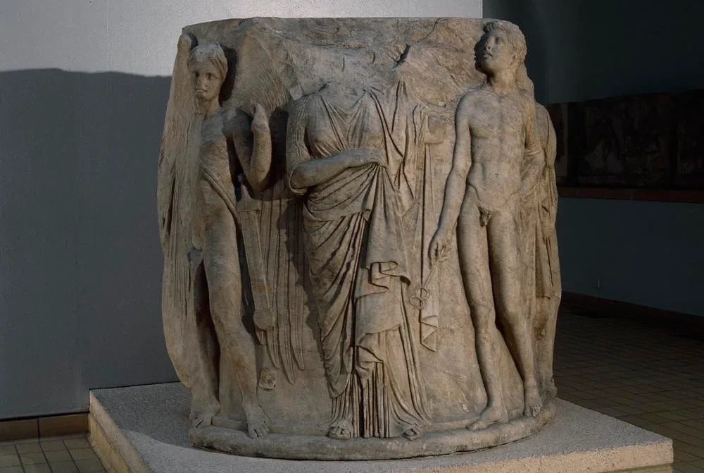 대부분 실물 크기의 대리석 신상으로 기원전 360년 아테네 조각가 프락시텔레스가