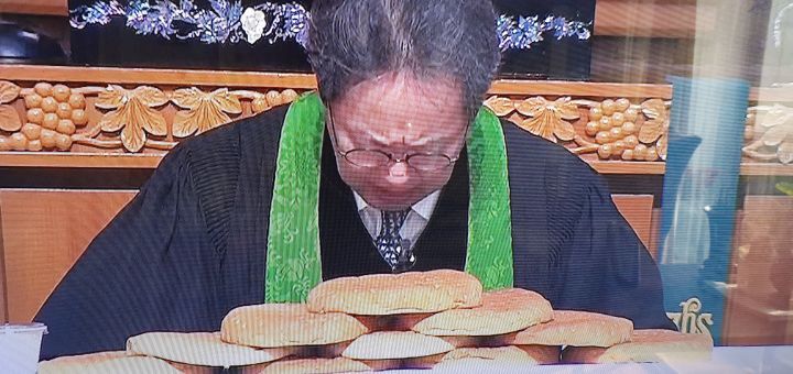 우리교회에선 금잔에 포도주와 카스테라 잘라