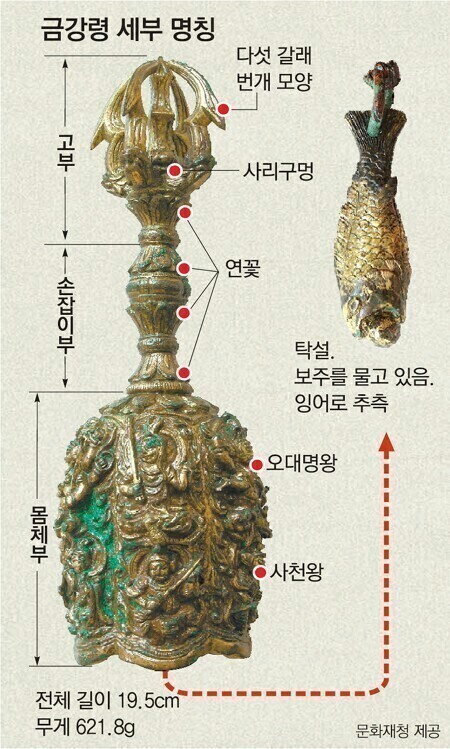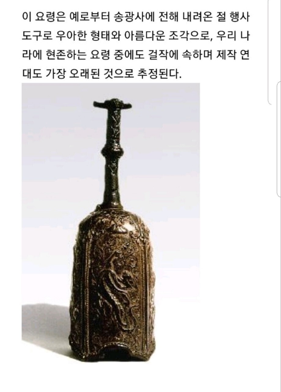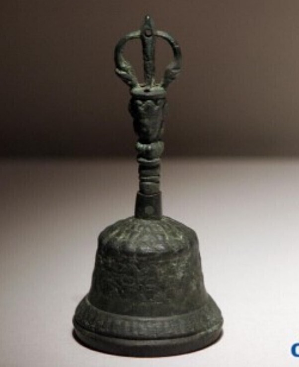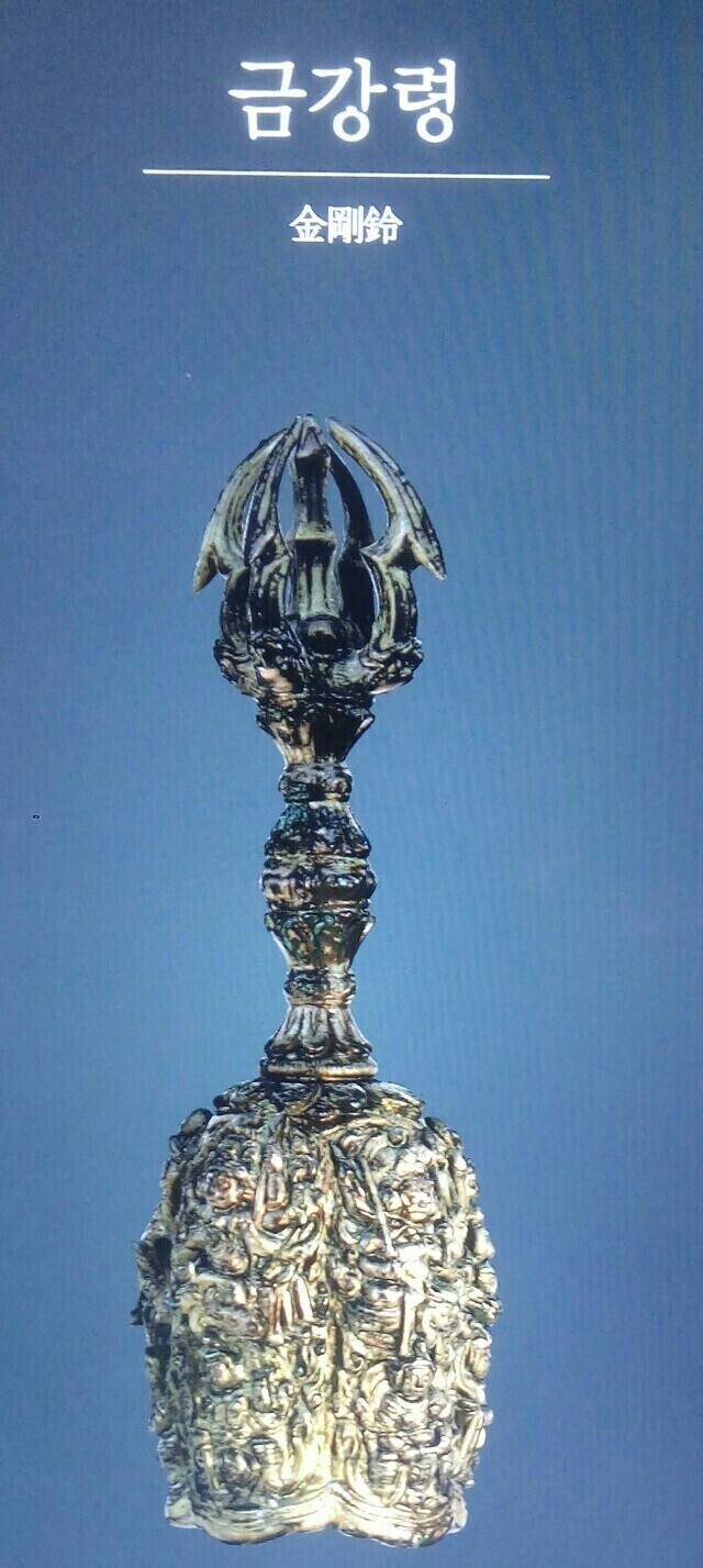 불교에서 의식을 행할 때, 손에 쥐고 흔들어 소리내는 작은 종 모양의 기구.