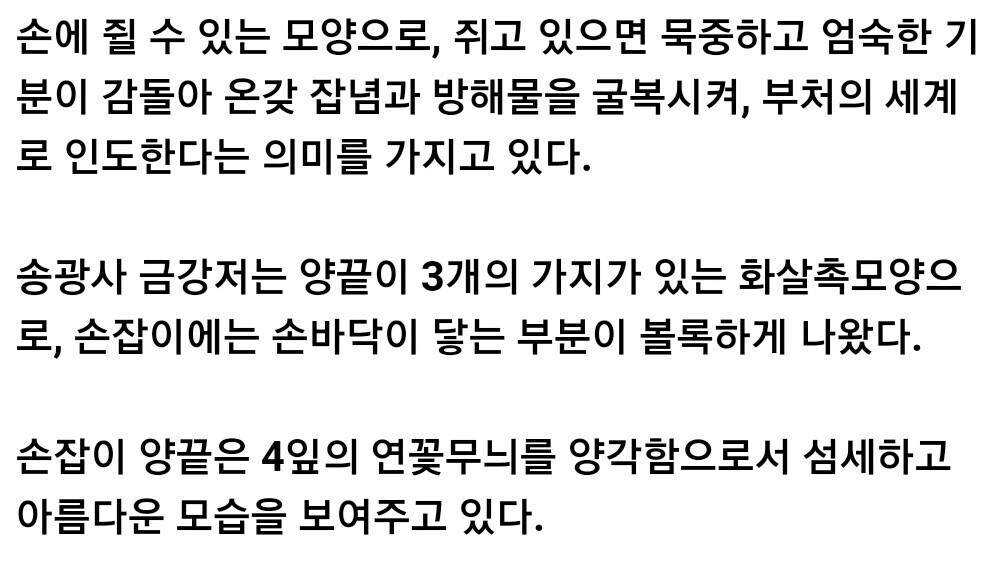 뒤에 밀교(密敎)에서 적을 쳐부순다는 의미로 이 무기를 佛具로 채용하여 여러 존상의 지물(持物)로서,
