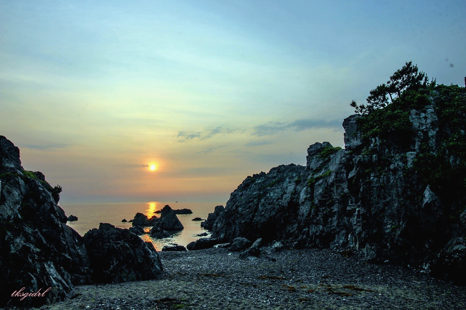 (경주 숨은 명소) 지경마을 해석동굴 앞 부근 낯 저녁야경 여명 일출 풍경 입니다