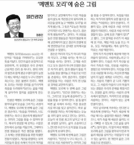 '메멘토 모리'에 숨은 그림 작성자따뜻한행복|작성시간25.06.04|조회수32 목록 댓글 0 글자크기 작게가 글자크기 크게가 https://product.kyobobook.co.kr/detail/S000214614907바닥짐 위의 행복 | 정종민 - 교보문고바닥짐 위의 행복 | 인생은 무거운 짐을 지고, 먼 길을 가는 여행길이다. 짐을 벗어 던진 가벼움으로 행복의 문을 두드리는 것은 인간의 자연스러운 욕구이다. 그런데도 바닥짐이 행복의 열쇠라product.kyobobook.co.kr 다음검색 현재 게시글 추가 기능 열기 북마크 공유하기 신고 센터로 신고 댓글 댓글 0 댓글쓰기 답글쓰기 댓글 리스트