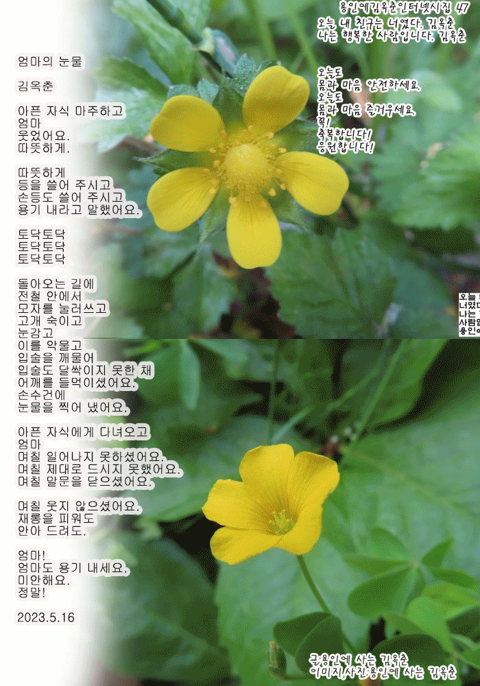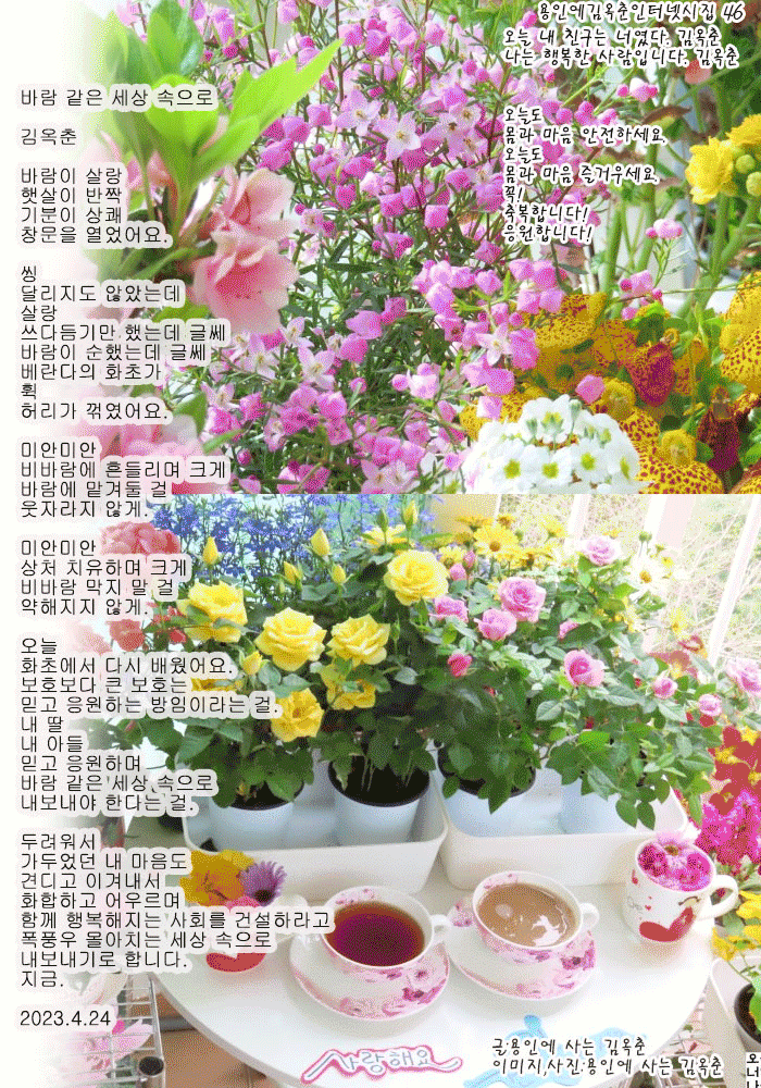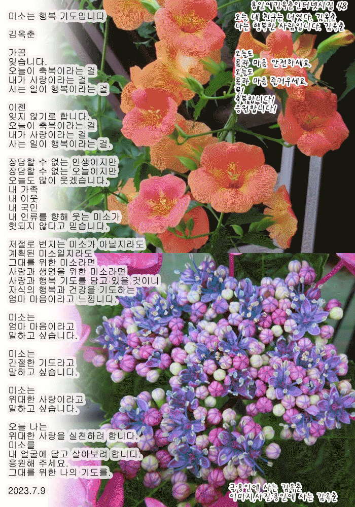 | 품질 관리가 가장 큰 홍보다 김옥춘 인터넷으로 상품을 구매해 보니 실망해 보니 다시는 구매 안 하게 된다. 인터넷으로 상품을 구매해 보니 정말 좋은 상품에 감동해 보니 다시 구매하게 되고 엄마께도 보내드리게 된다. 써보니 참 좋더라고 이야기하게 된다. 입소문이 매우 큰 광고이니 상품 사용 후기가 매우 큰 광고이니 품질 관리가 가장 큰 홍보라고 느낀다. 홍보하고 싶다면 내 상품에 누구도 실망하지 않도록 관리를 잘 해야 한다고 느낀다. 존경받고 싶다면 내 마음과 행동에 부끄러움이 없도록 조심하고 노력해야 한다고 배운다. 후회하고 싶지 않다면 내 마음과 행동을 잘 다스리고 다듬어 올바르게 서도록 날마다 노력해야 한다고 배운다. 2024.6.27 | 그러니 살만한 참 따뜻한 세상 김옥춘 모르고 한 실수가 누구에겐가 아픔이 되고 피해가 되었을 때 어떻게 하세요? 누구나 사과하고 바로잡겠죠? 당연히! 모르고 실수했을 때 바로잡으면 큰 은혜를 베풀게 되는 일도 있습니다. 원문을 변형하여 훼손된 글을 주인 이름을 빼거나 바꾸어 뺏긴 글을 모르고 그대로 공유하여 네티즌 집단 글 뺏기와 글 훼손이 되었을 때 원문형 글로 바로잡아 다시 공유하면 글을 주인에게 돌려주는 일이 됩니다. 큰 은혜를 베푸는 일이 됩니다. 이웃과 후손의 같은 실수를 막는 일이 됩니다. 바로잡는 일이 이웃 사랑과 후손 사랑이 됩니다. 좋은 글 중에서와 몇몇 실명으로 뺏긴 글을 원문형으로 바로잡아 공유하시는 분들이 점점 늘어나고 있습니다. 글 주인의 아픈 눈물이 감사의 눈물로 점점 바뀌고 있습니다. 참 따뜻한 세상이죠? 참 살만한 세상이죠? 글을 원문형으로 공유해 주시는 모든 분 정말 고맙습니다. 큰 은혜 베푸셨습니다. 좋은 글 중에서라는 한글과 몇몇 실명의 사람들에게 씌워진 글 뺏기와 글 훼손 누명을 벗겨 주신 은혜도 정말 고맙습니다. 당신이 세상의 온도를 올렸습니다. 당신이 살만한 세상을 만들었습니다. 존경합니다. 2024.6.27 |