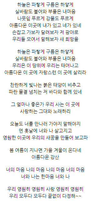 언제 들어도 밝고 격조 높은 애국가 같은 노래입니다