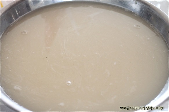체에 좀 넣어서 뽀얀 물이 나오도록 좀더 조물락 거려주고..