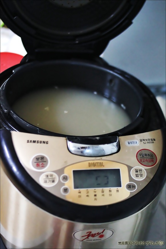 이렇게 밥알이 잘 풀어지면 보온상태로 대략 4-5시간.