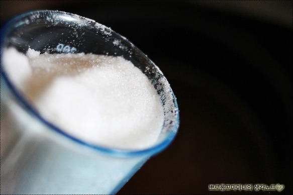 여기에 설탕을 한컵(200g), 소금 한두꼬집을를 넣고 잘 저어주세요