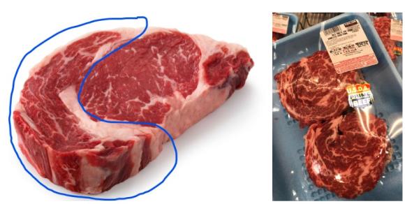 립아이보다는 지방이 적음에도 육향이 강하고 담백합니다. 가격은 등급에 따라 $8~16/lb 정도 하며 마트에서 세일을 많이 하는 부위입니다. 미디엄 레어 이상으로 익혀 드시면 질기실 수 있으니 미디엄 웰 이상으로는 굽지 마세요.