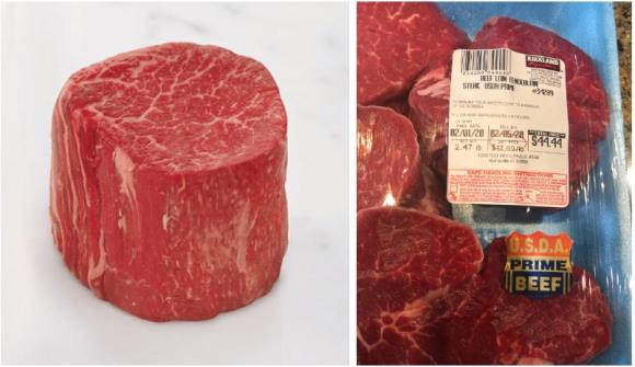 1등급으로 볼 수 있는 최상급 등급입니다. 살코기 사이사이에 지방이 잘 분포되어 있어 덜 질기고 육향이 진합니다. 저는 코스트코와 로컬 정육점에서만 구매를 해요. 저희 동네 월마트에서는 취급하지 않지만 크로거와 홀푸드의 정육점에서는 취급을 합니다.