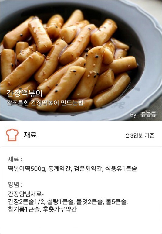 간장떡볶이 레시피 작성자미션|작성시간21.07.15|조회수383 목록 댓글 1 글자크기 작게가 글자크기 크게가 [간장떡볶이 레시피]짭조름한 간장떡볶이 만드는법 다음검색 현재 게시글 추가 기능 열기 북마크 공유하기 신고 센터로 신고 댓글 댓글 1 댓글쓰기 답글쓰기 댓글 리스트 작성자솔체 | 작성시간 21.07.15 간장 떡볶이 레시피 맛있게보입니다.매웁지않아 어린이들 에게 좋을 듯 합니다. 댓글 전체보기