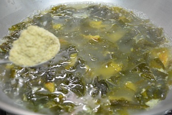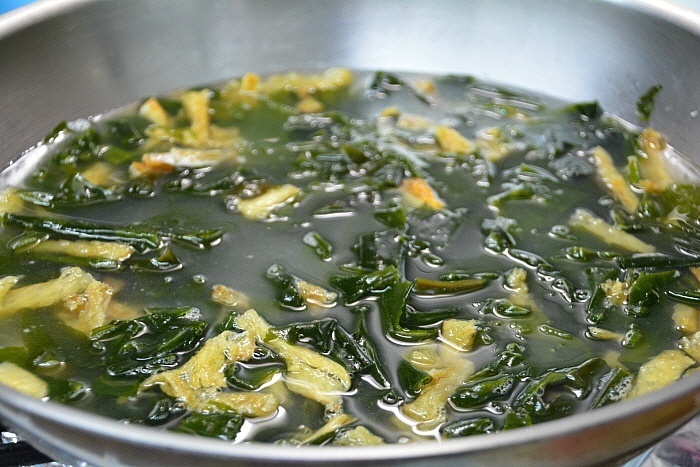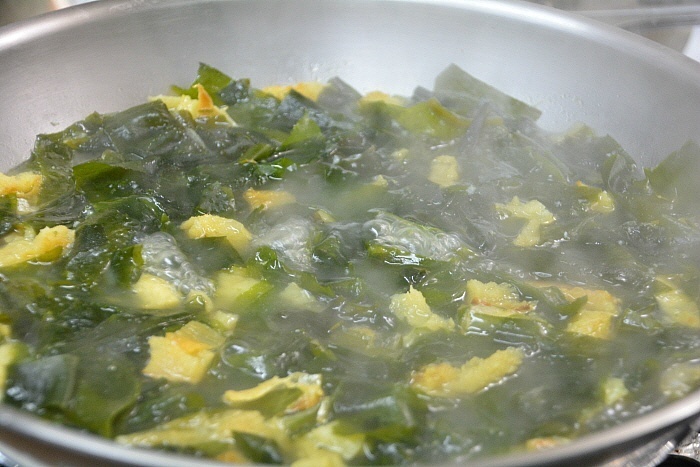 국이 끓으면 생젓과 다진마늘을 넣고 미역이 부드러워지게 끓여주시고,
