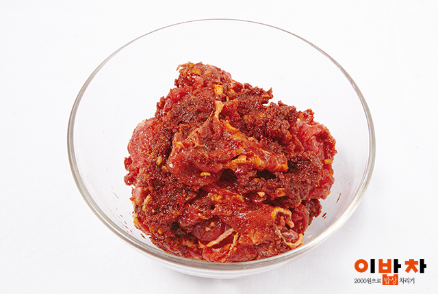 5. 볼에 쇠고기와 양념장을 넣어 버무리고,