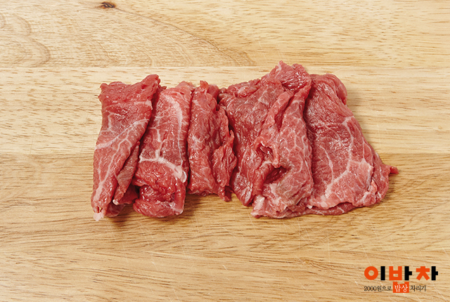 3. 쇠고기는 키친타월에 밭쳐 핏물을 제거한 뒤 먹기 좋게 2~3등분 하고,