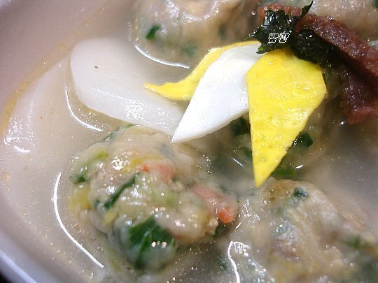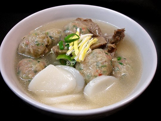 오늘 아침(2008년 1월1일)에 LA갈비를 넣고 끓여 먹은 굴림만두떡국이예요.