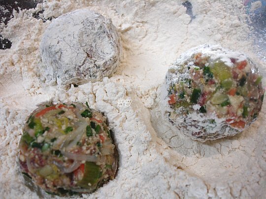 반죽이 완성되면 한 입 크기(메추리알보다 약간 크게)로 완자를 만들어 밀가루에 굴린다.
