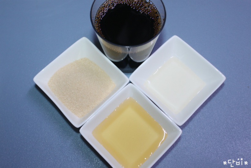 진간장 1/2컵, 물엿 4숟갈, 맛술 1숟갈