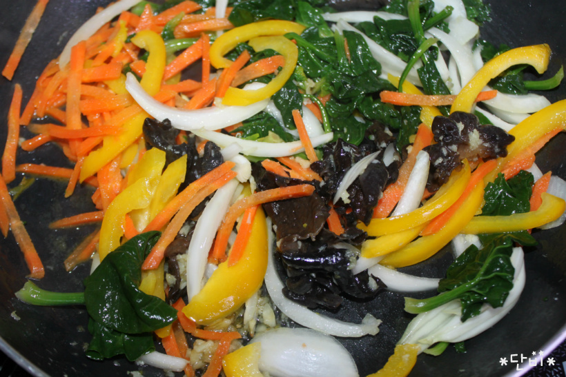 당근 1/3개, 파프리카 1/2개, 양파 1/2개