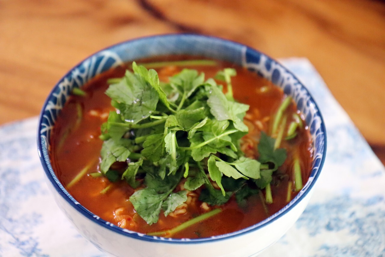 미나리의 향이 은은하게 퍼지는 미나리 라면입니다.