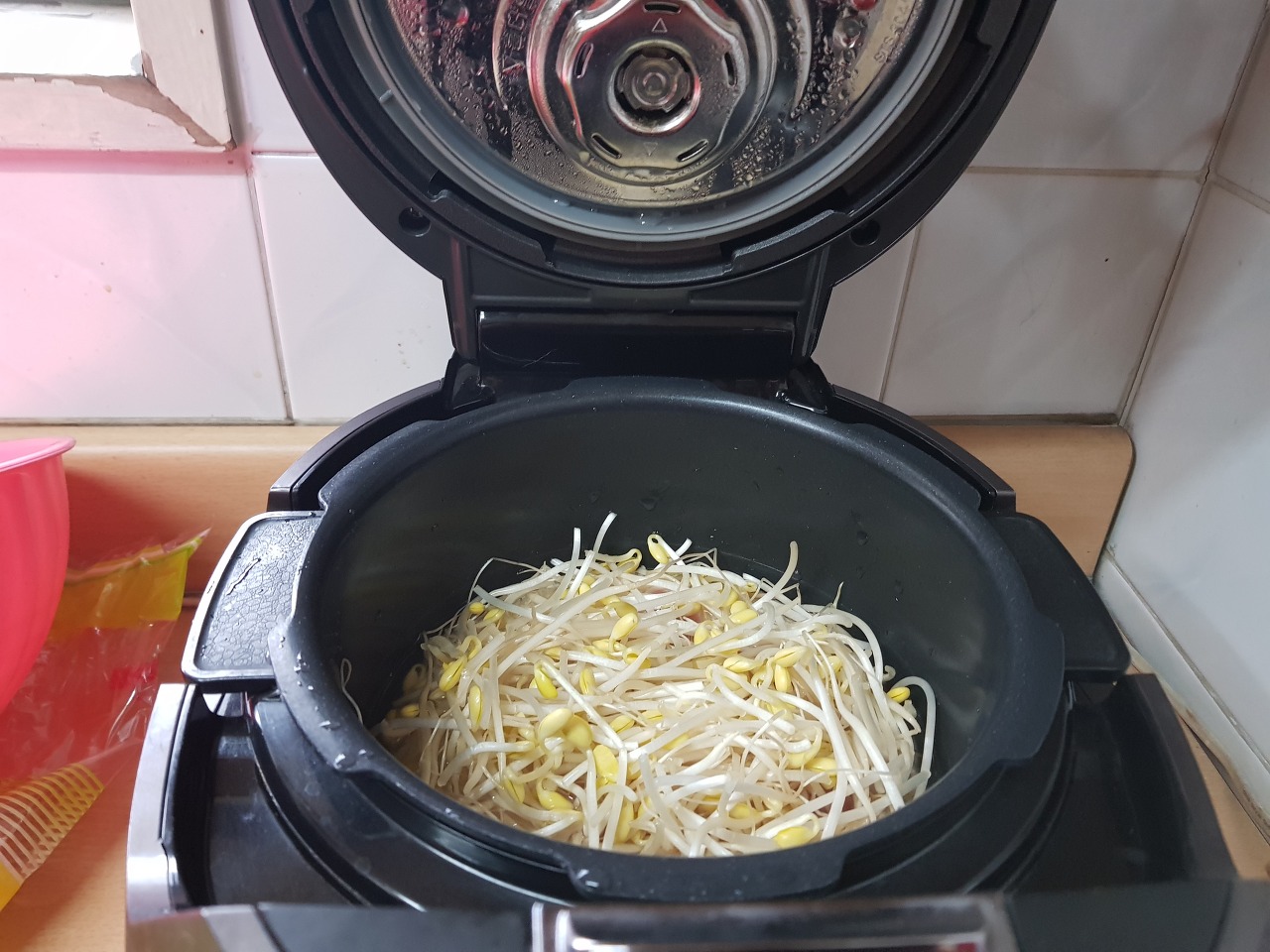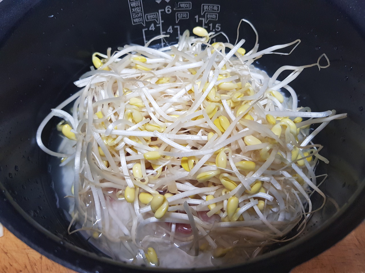 콩나물에서 수분이 많이나옵니다.