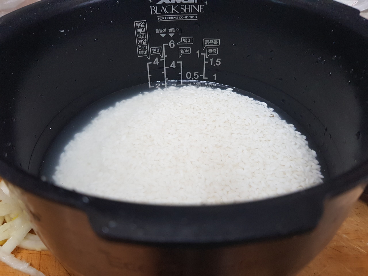 밥 물을 조금 적은 듯 담아서 하세요 -