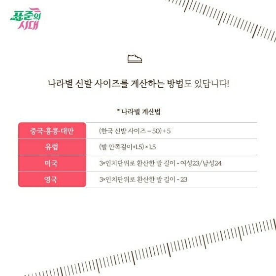 - 중국·홍콩·대만 : (한국 신발 사이즈-50) ÷ 5