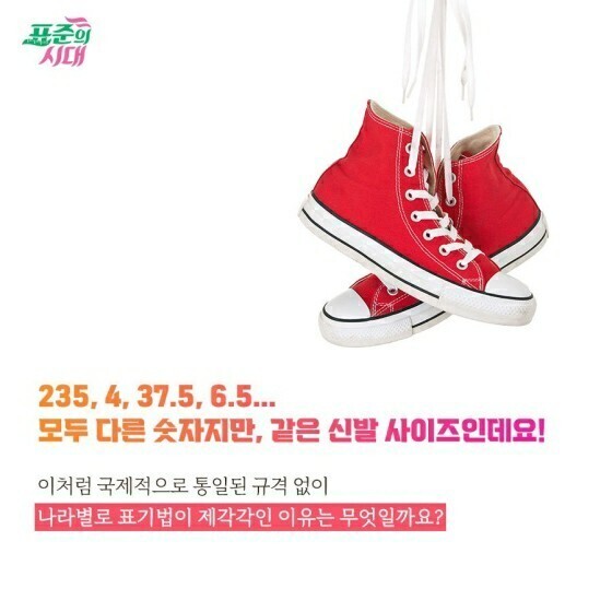 신발 사이즈가 표준화됐더라면, 사이즈 표를 검색해 보는 번거로움이 없었겠죠?
