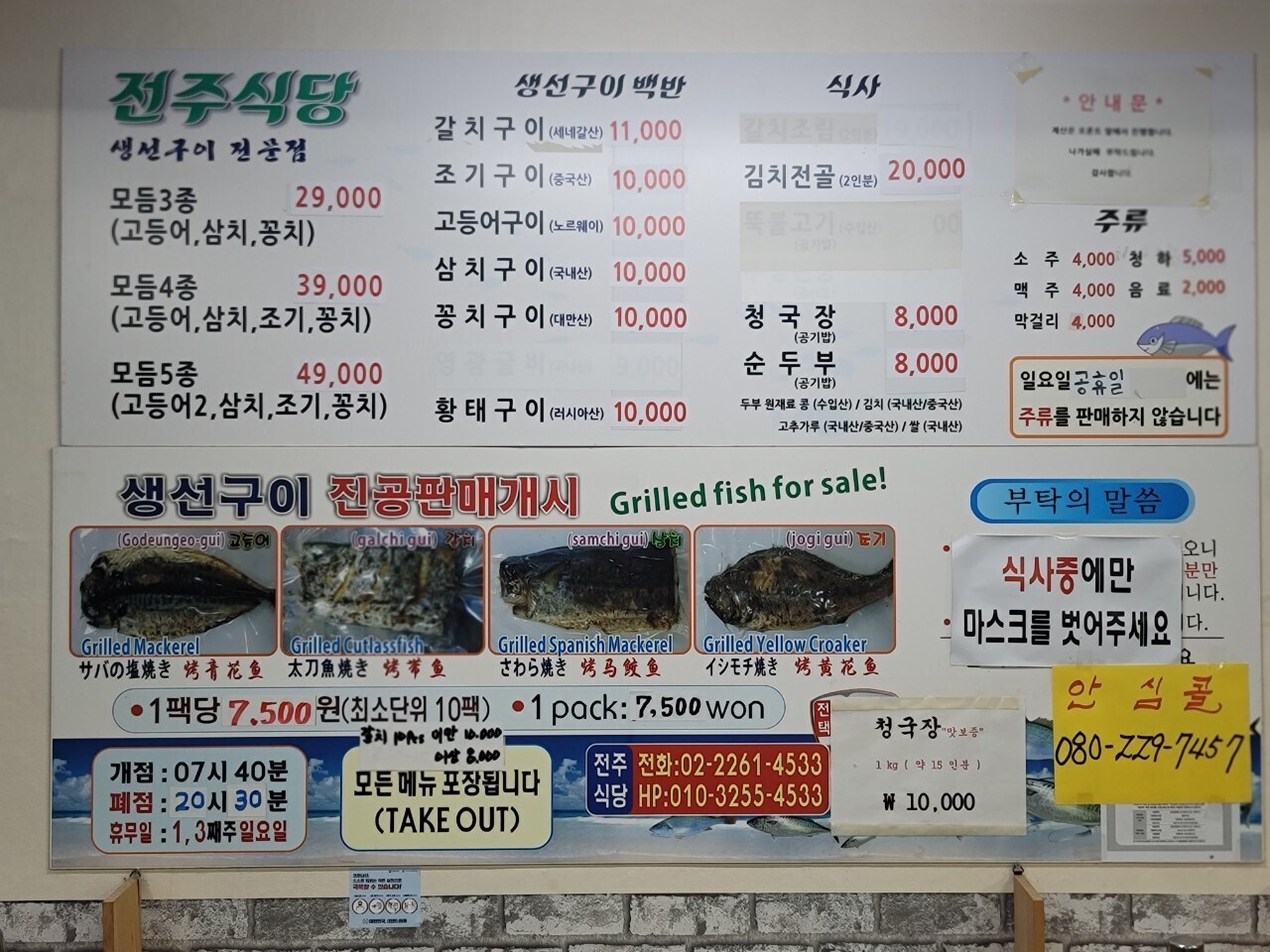 종로3가역 일명 보쌈골목에 위치한 돌솥밥주는 생선구이 전문점인 전주식당 입니다. 저는 일단 돌솥밥 주는 집은 점수주고 봅니다. 밥이 맛나면 나머지 반찬은 좀 떨어져도 다 용서가 되지요. 연탄불에 직접 구버주는 생선 구이와 서비스로 내어주시는 된장찌개가 맛난 집입니다. 일요일날 소주를 안주어 약간 빈정 상하기는 했지요.. ㅎㅎ