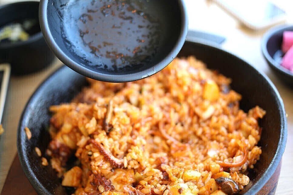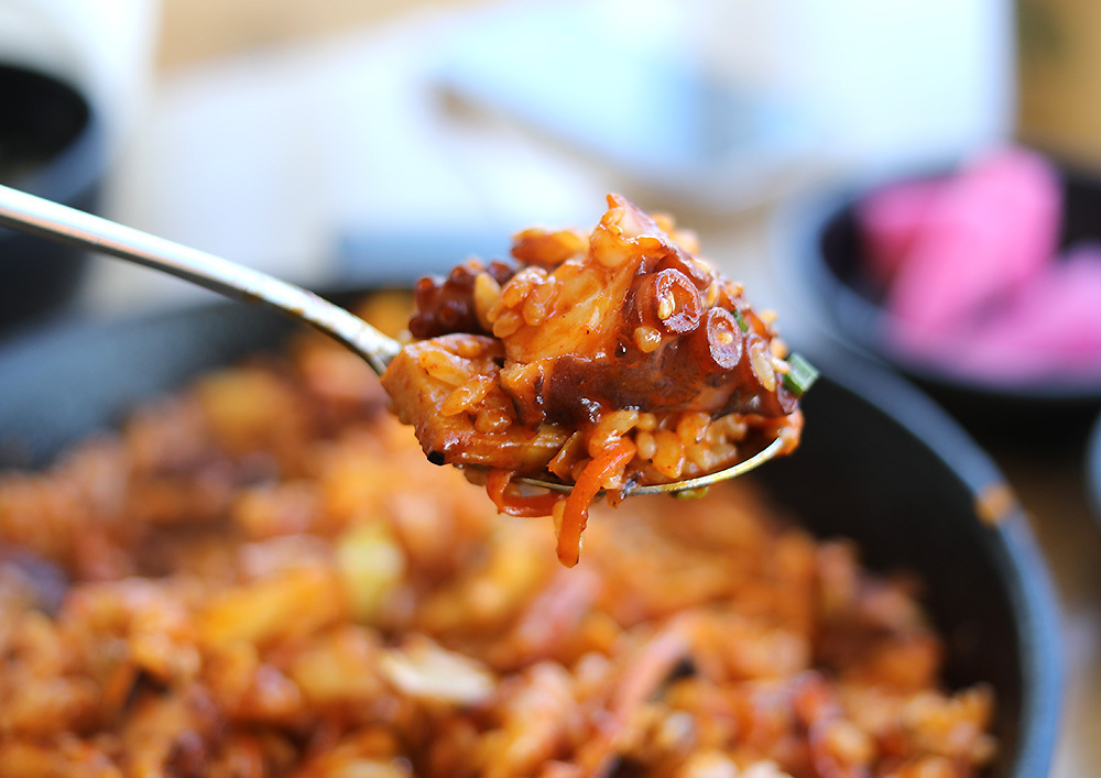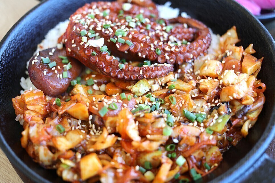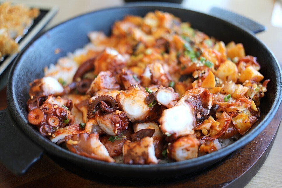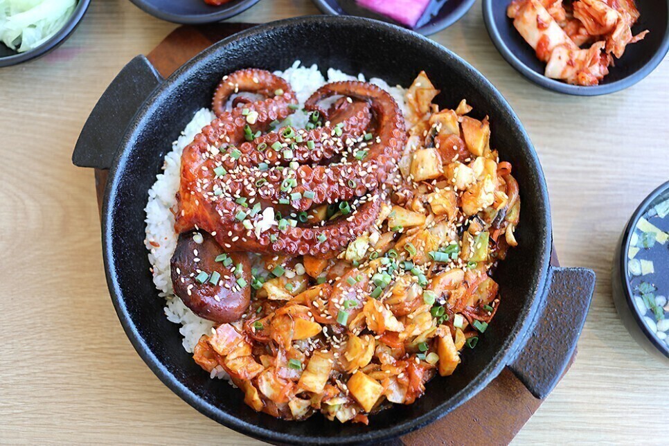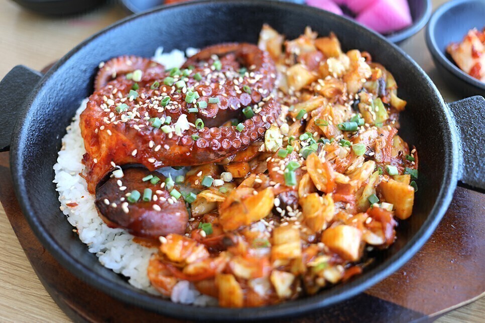 말 그래도 돌 문어 한마리가 떡하니 올라가 있는 김치 덮밥이다.