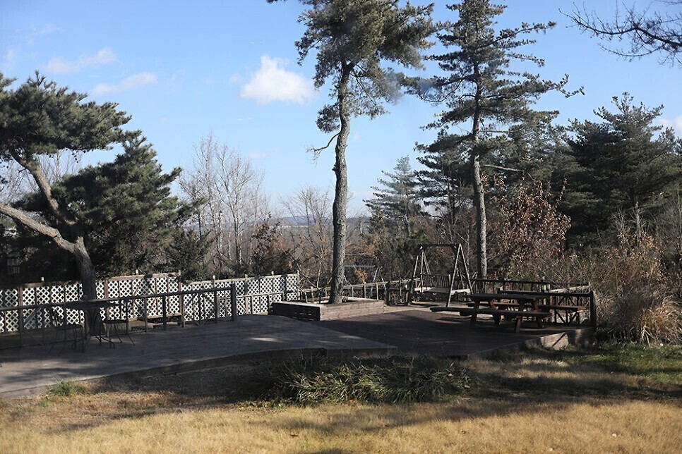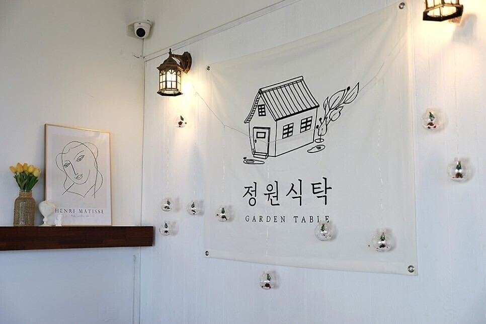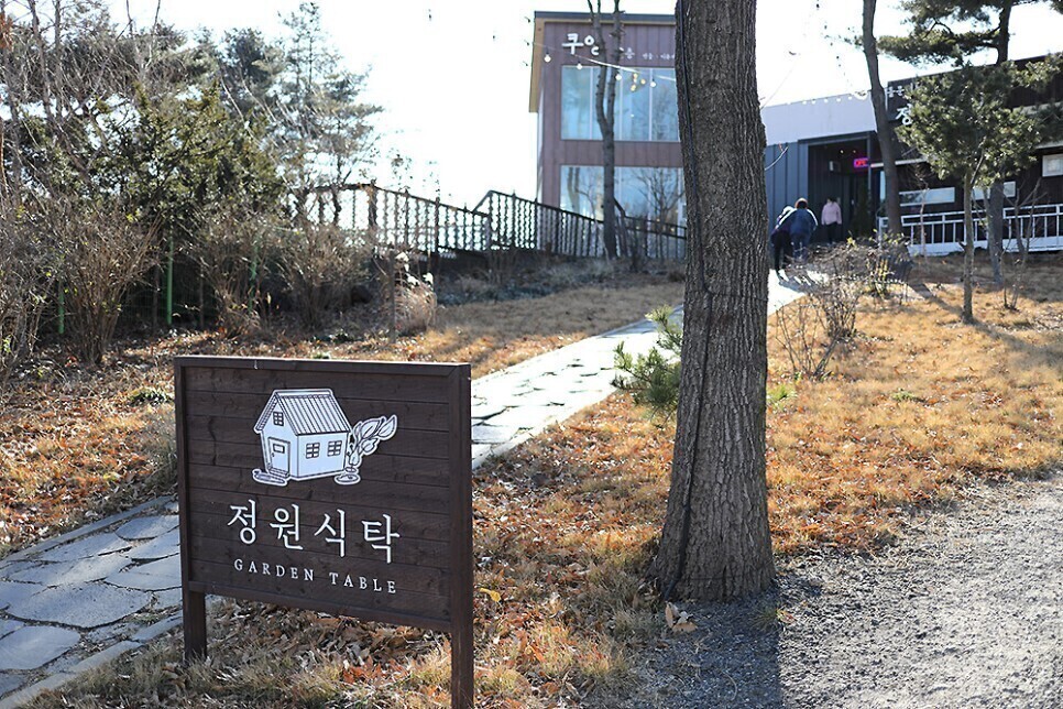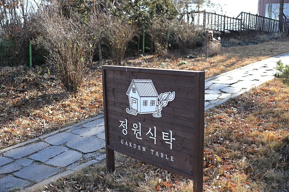 짧은 등산을 마치면 간판에 정원식탁이란 간판이 보인다.