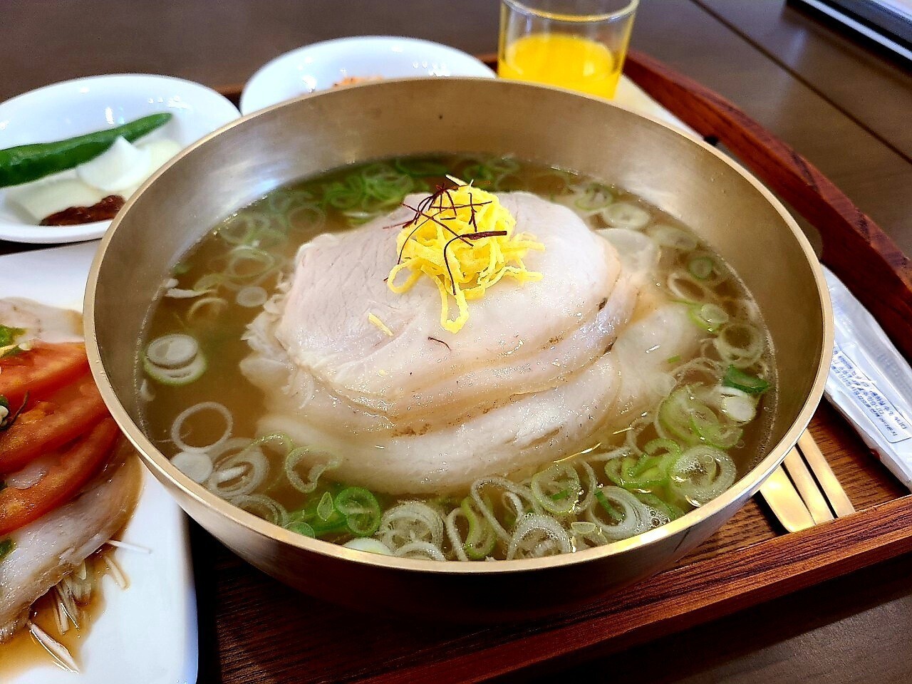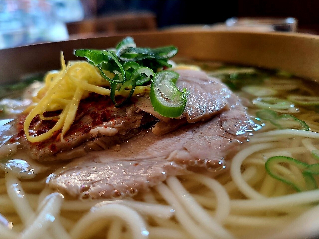 제주에서 공수한 중면을 사용해 잘 삶아 토렴한ᆢ