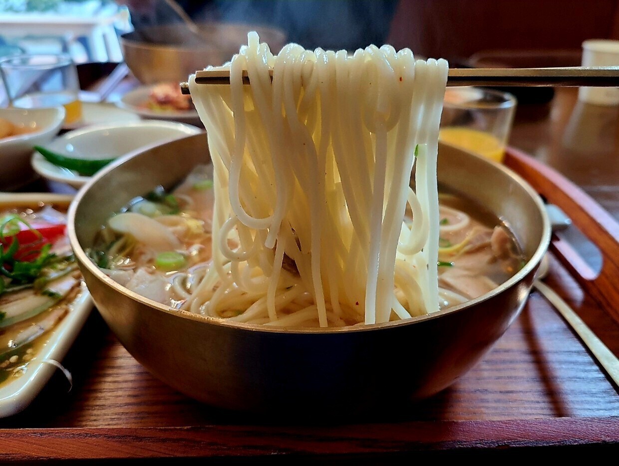 제주산 중면국수를 잘 삶아 토렴해 넣은ᆢ