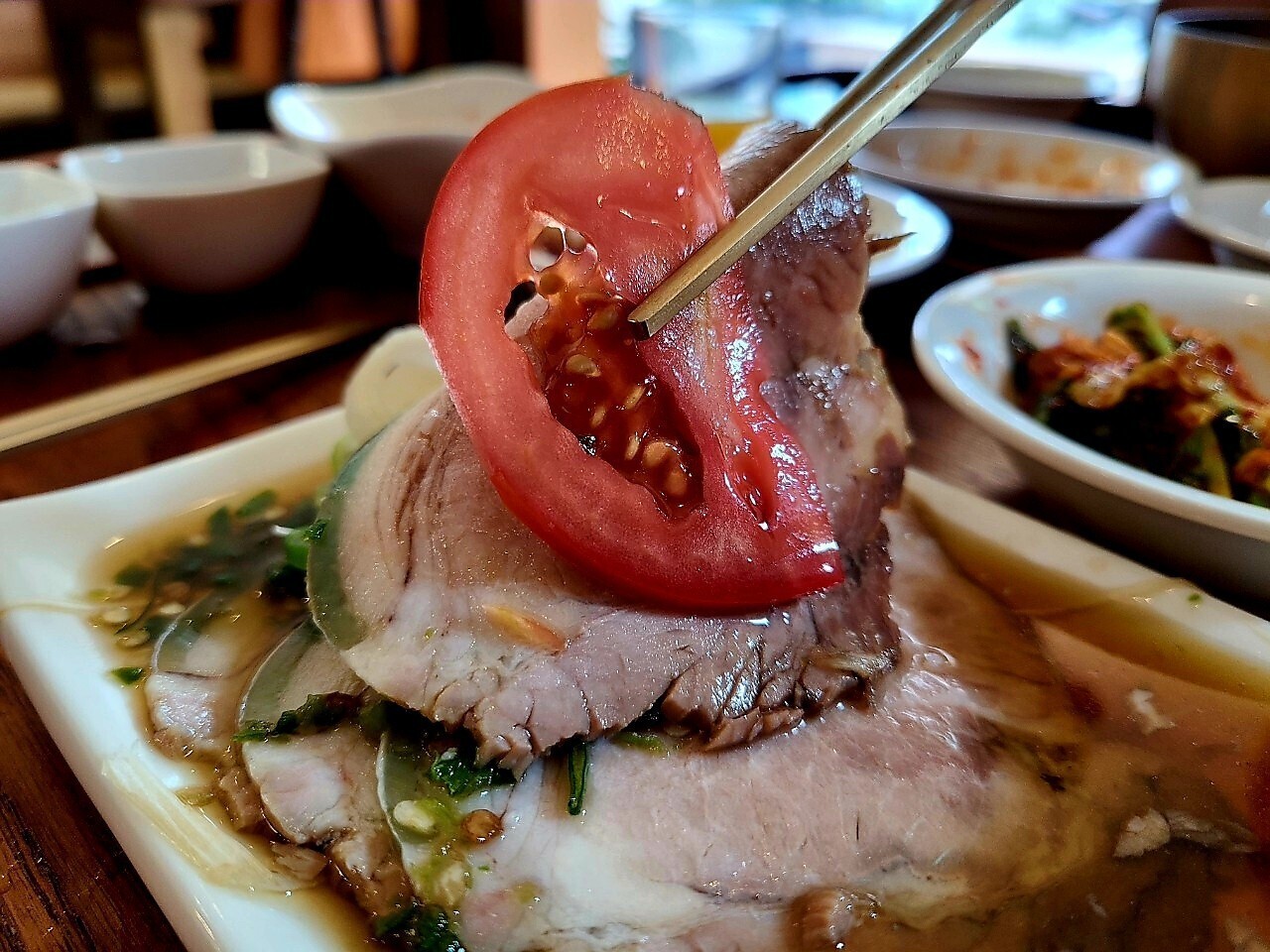 아주 잘 삶아낸 부드러운 돼지수육을ᆢ