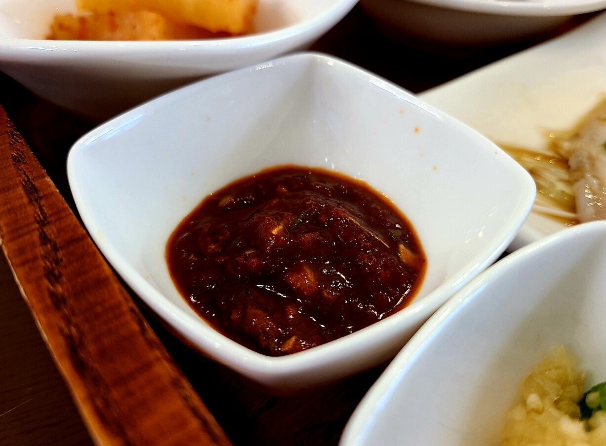 간장소스와 살짝 절인 토마토와 함께 나오는ᆢ