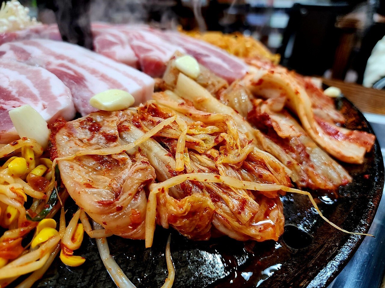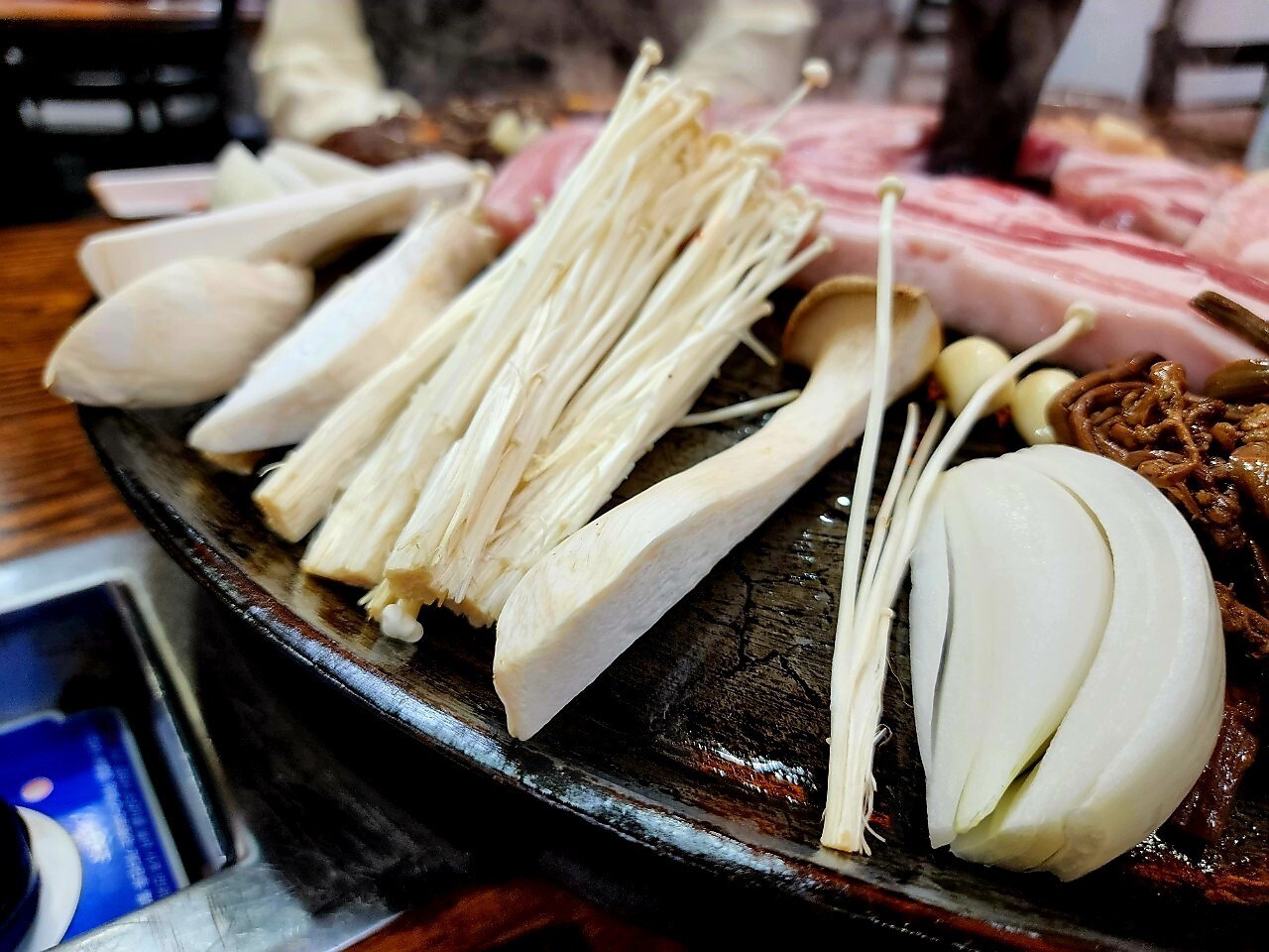 커다란 솥뚜껑에 프레쉬한 한돈 오겹살과ᆢ