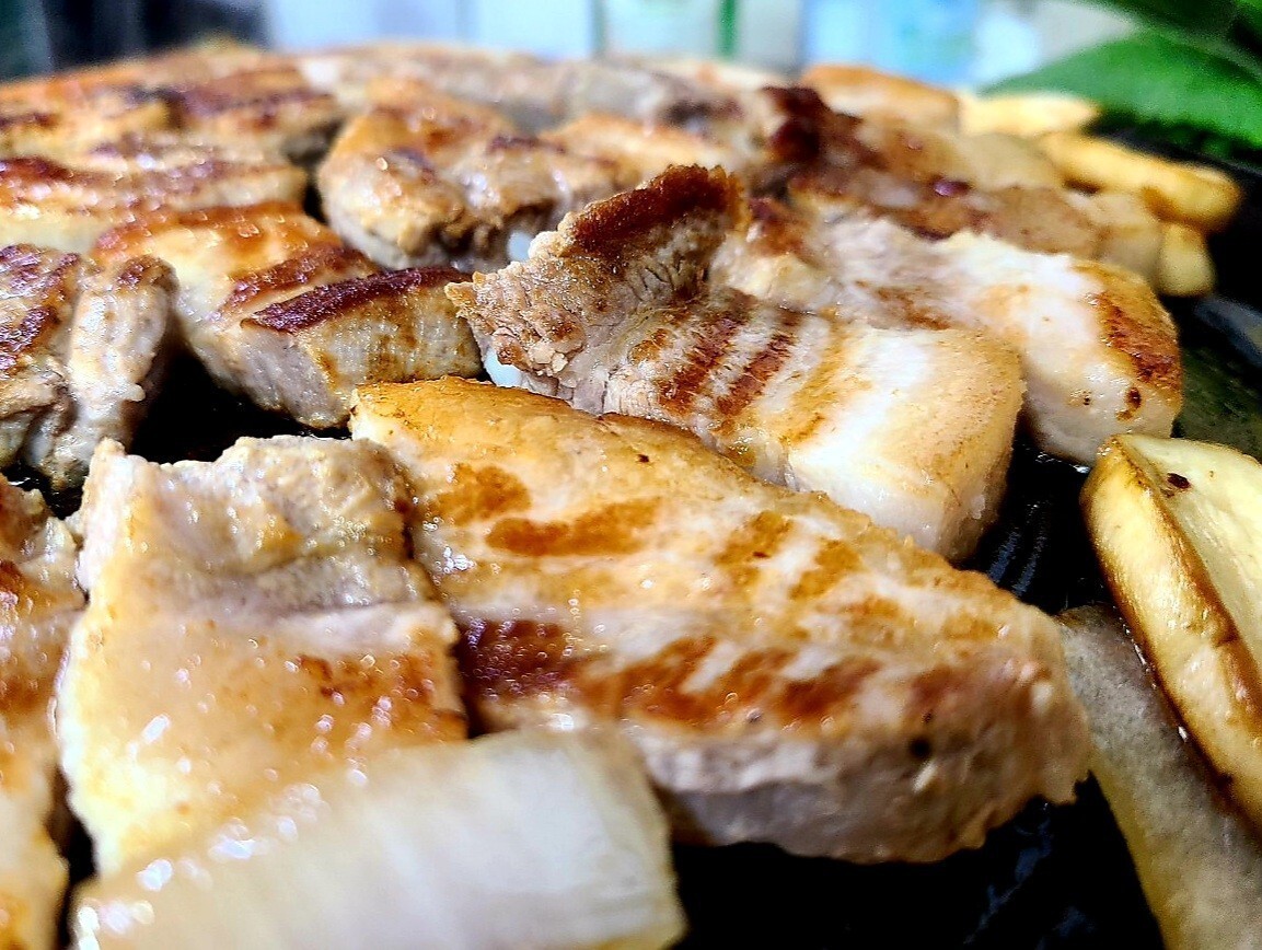 푸짐하게 올려 나오는 솥뚜껑삼겹살ᆢ