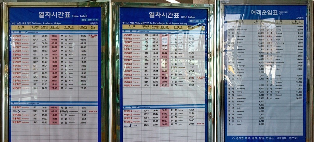삼랑진역 이용자들을 위해서 가장 배려가 묻어나는 부분은 여객 운임 표와 열차 시간표가 매표창구 위 높은 곳에 위치한 것이 아니라 나이 드신 분이나 스마트 앱에 익숙지 못한 사람도 쉽게 볼 수 있도록 대합실 한가운데 돌림판 형식으로 비치하고 있다는 겁니다.
