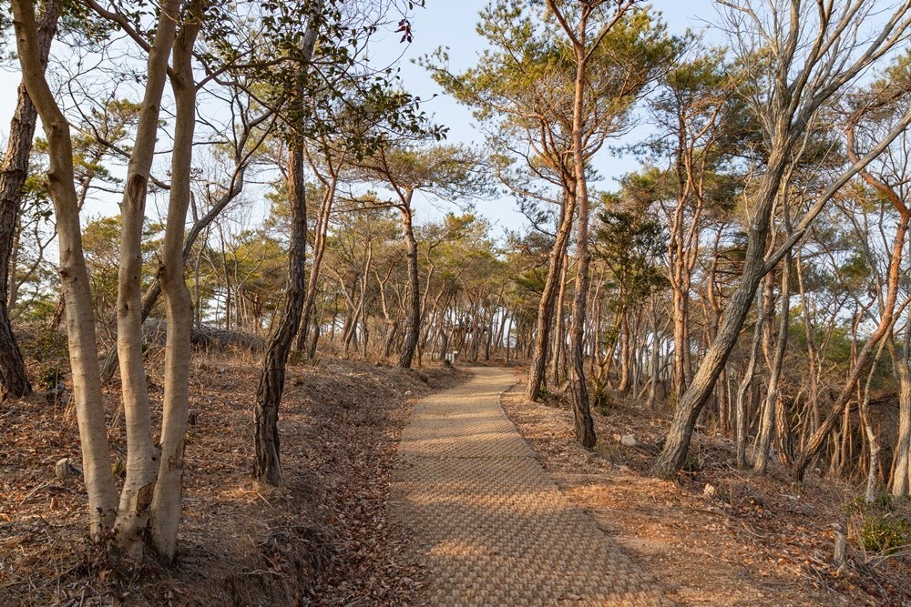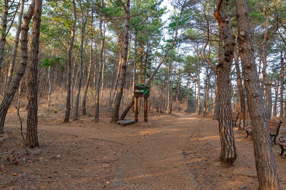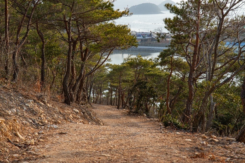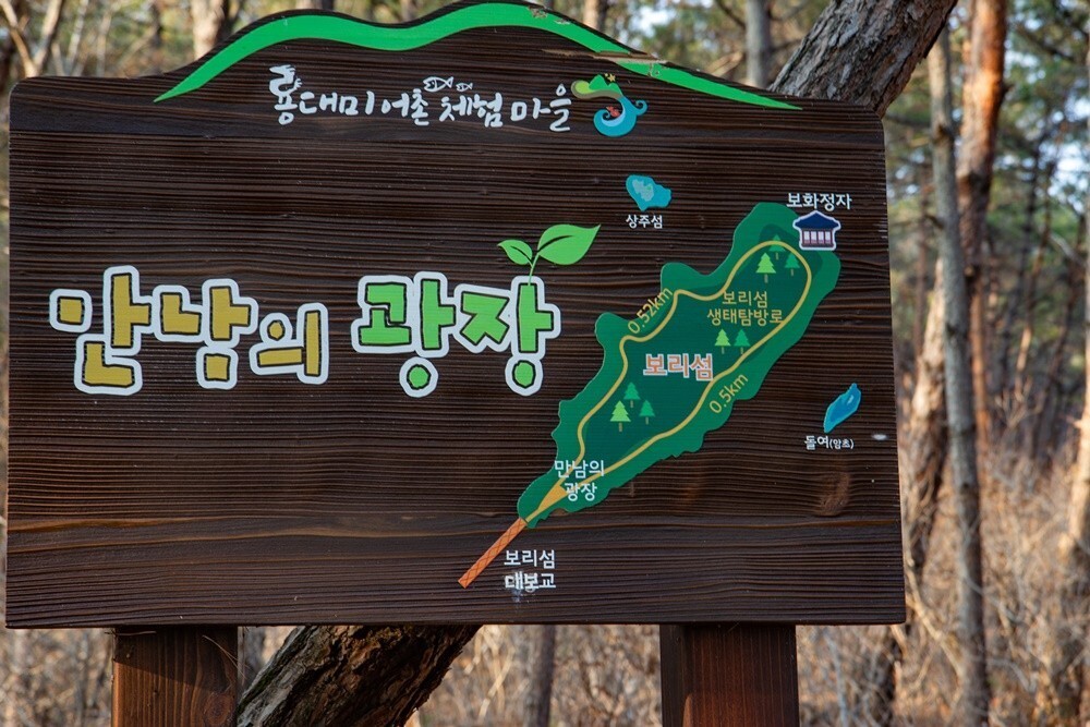 보리섬 대보교 출발 200m 지점에 만남의 광장이 있고 두 갈래 길이 있습니다. 여기서 섬 한 바퀴를 돌아 나오는데 30분이면 넉넉한 고성 보리섬입니다. 봄이면 진달래 꽃섬으로 불릴 만큼 진달래 나무가 많았고 소나무가 숲을 이루어 삼림욕하기도 좋아요.