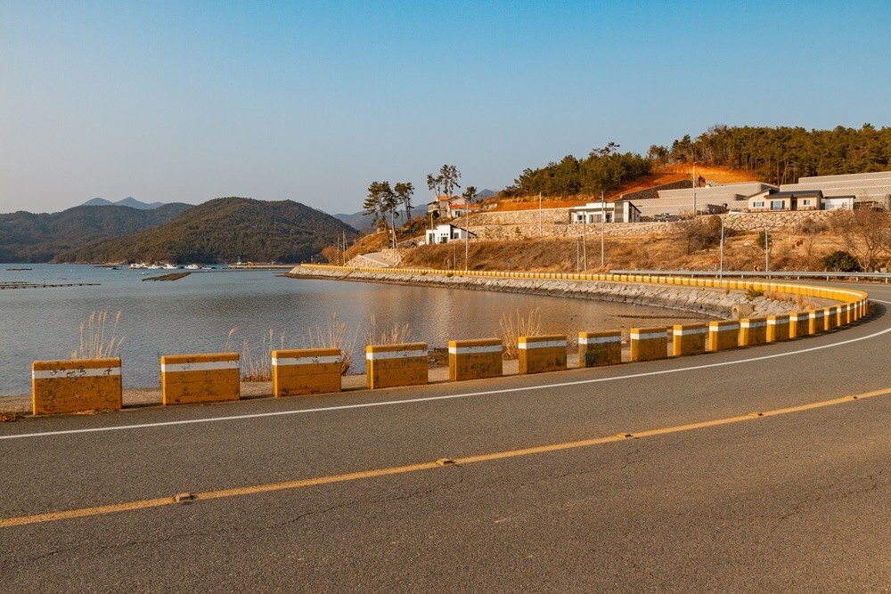 고성군 삼산면 룡대미 어촌 체험마을 표지판이 보이는 곳에서 얼마간 달려가면 탁 트인 발다가 나오는데요. 그림 같은 해안 길이 너무 아름다워 고성에 이런 데가 있었나 싶었습니다. 드라이브 코스로 인기 좋은 동해면 해안 도로 못지않게 삼산면 해안 도로 정말 멋졌답니다.