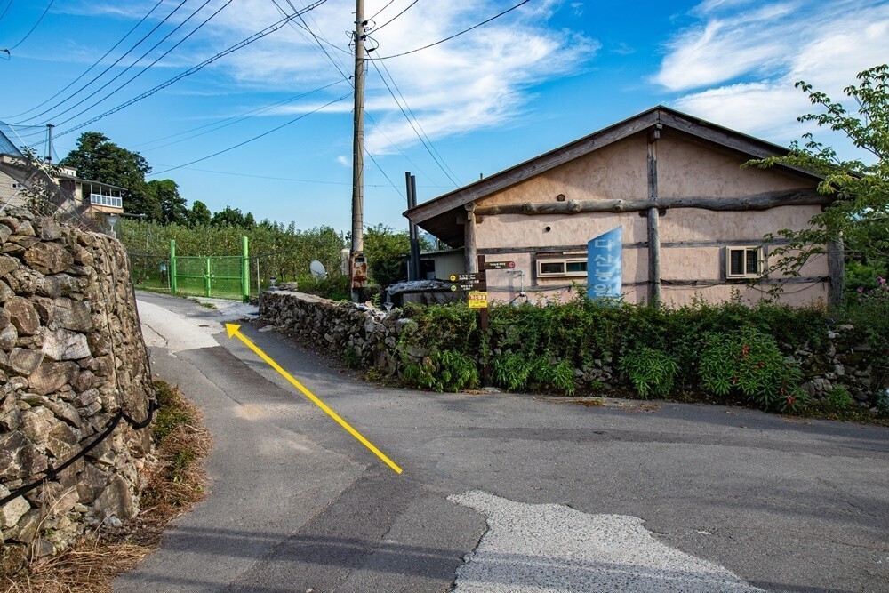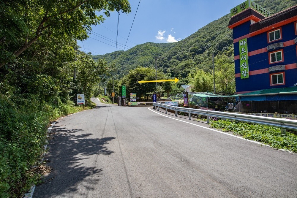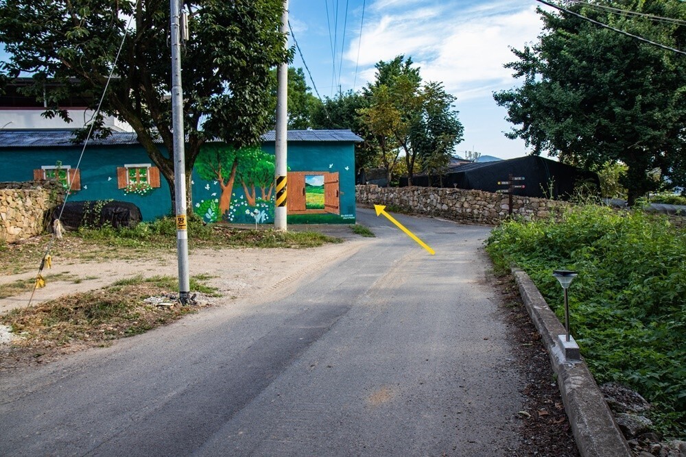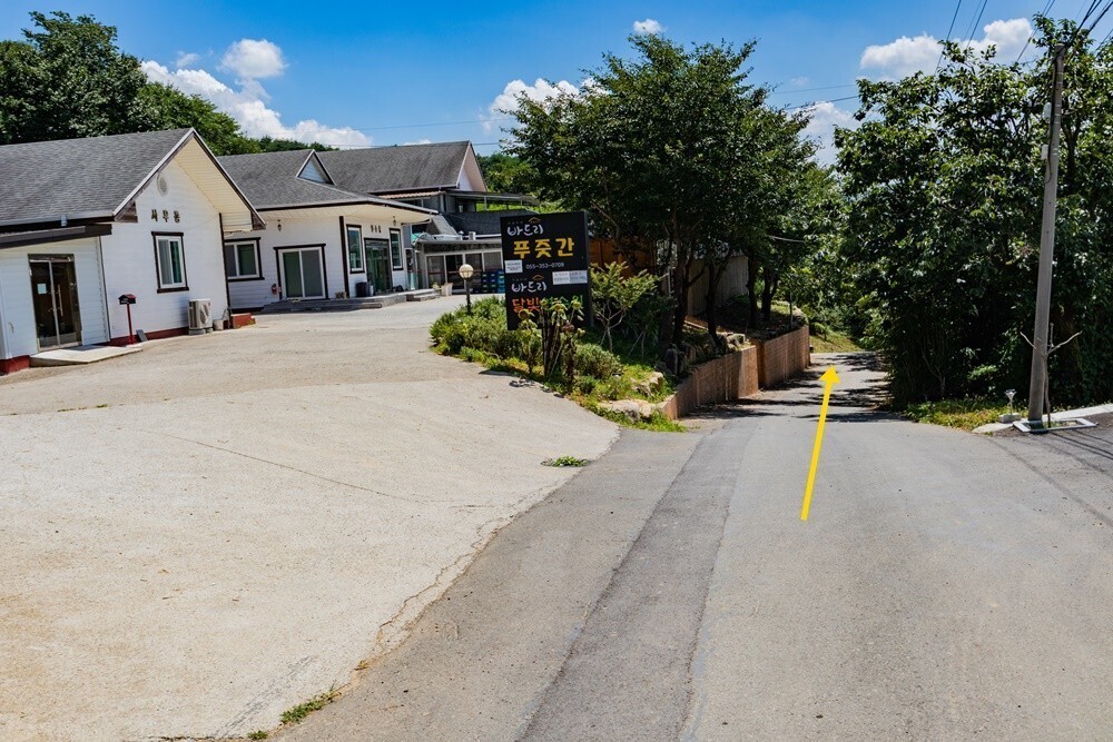 바드리마을 안쪽으로 들어가면 마을 끝 지점에 다산 농원이 보입니다. 다산 농원에서 좌측 언덕길로 진행하세요.