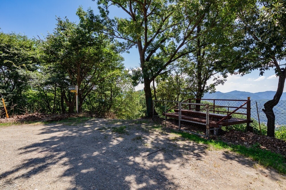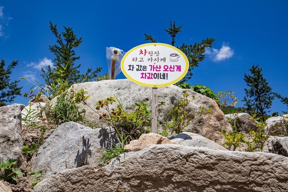 밀양 최고 오지 해발 600m 가산마을, '한국기행' '오지로 트롯 촬영지'라고 적힌 곳에 쉼터가 하나 있고, 길을 막아둔 바리케이드가 있을 수도 있어요. 대부분 열려 있지만 산 짐승용으로 설치 한 거라 닫혀 있으면 부담 가지지 마시고 열고 지나가시면 됩니다. 사유지 그런 거 아니니까 안심하고 지나가세요.