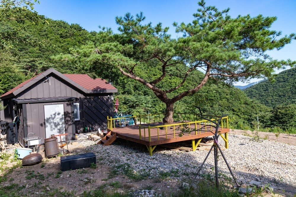 가산마을 지킴이분의 주택 위에는 최근 이주해 15평 작은 집을 짓고 그림 같은 소나무 테크를 가진 분도 계셨어요. 너무 부러웠네요, 어떻게 이런 테크가 가능했는지, 여기서 밥 먹으면 신선이 따로 없을듯했어요.