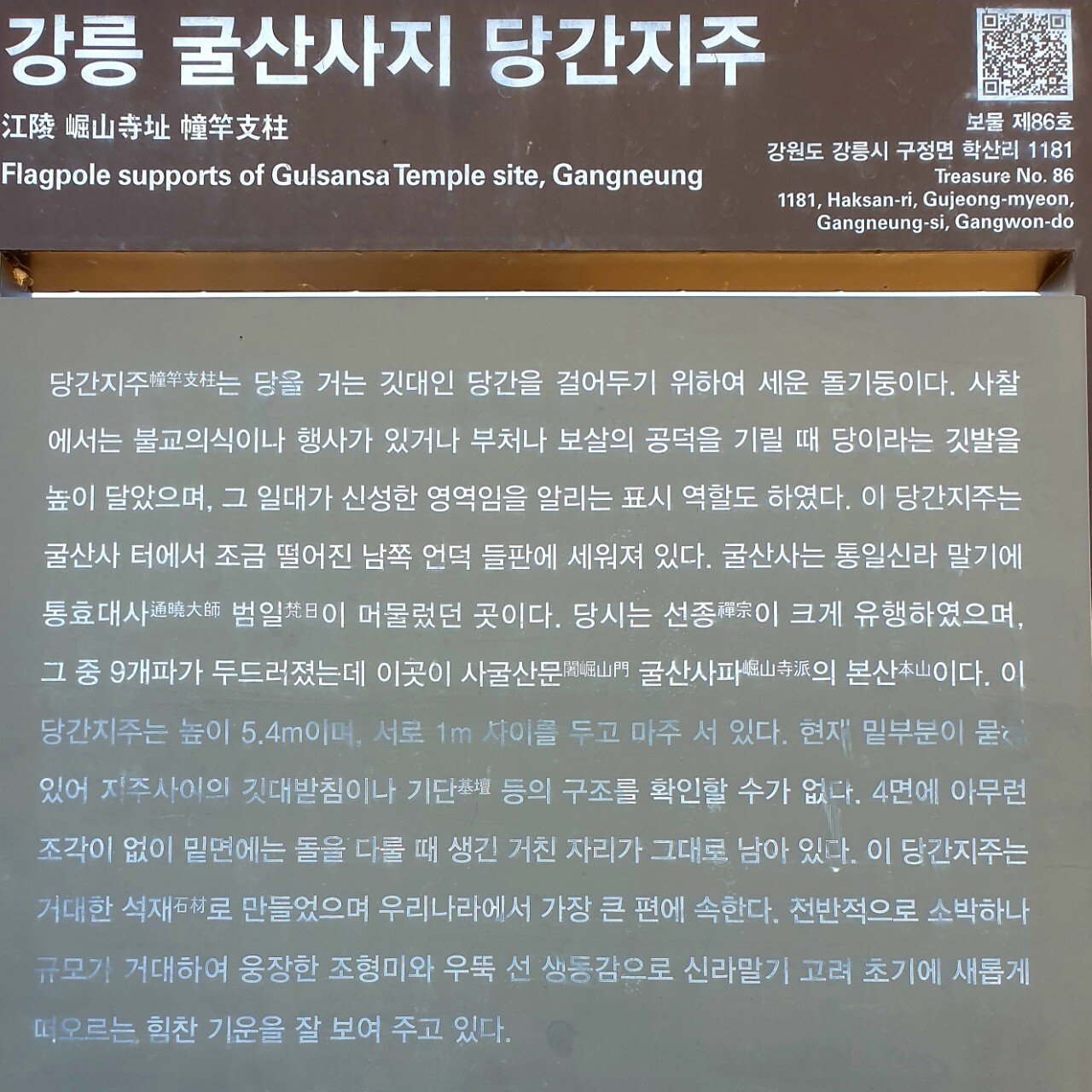 강원도 강릉시 구정면에 있는 통일신라 후기에 화강암으로 제작된 당간지주.